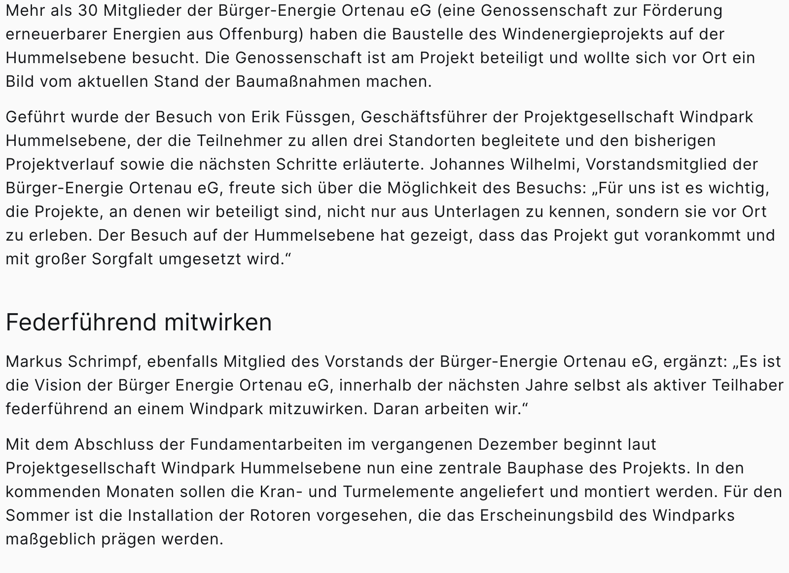 Startseite » Presse » Bürger-Energie Ortenau besucht Windpark-Baustelle auf HummelsebeneBürger-Energie Ortenau besucht Windpark-Baustelle auf Hummelsebenevon Markus Schrimpf27. Januar 202627. Januar 2026 Beitrag von „Baden Online“ am 26. Jan. 2026
