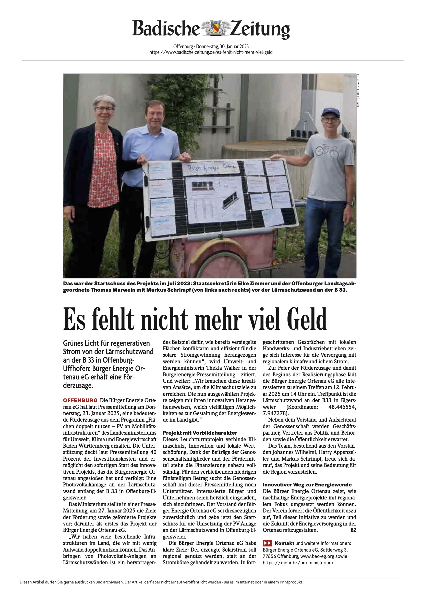 Startseite » Presse » Es fehlt nicht mehr viel GeldEs fehlt nicht mehr viel Geldvon Markus Schrimpf31. Januar 202516. November 2025 Badische Zeitung, Offenburg · Donnerstag, 30. Januar 2025